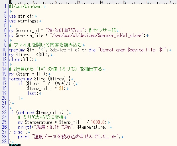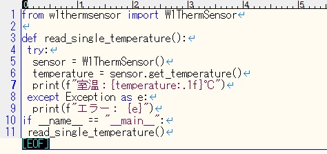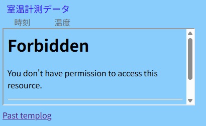 温度センサー DS18B20 と Raspberry Pi で室温を連続して記録するシステムを作ってみました。 DS18B20 は Amazon 等で安価に入手可能な温度センサーで、防水処理がされているので水温測定にも利用できます。 Raspberry Pi には3本のリード線(赤、黄、黒)をGPIO端子に接続します。赤(VDD)を電源端子(3.3Vまたは5V)、黄(DQ)を1-Wire端子、黒(GND)を接地端子に接続します。また、赤(VDD)と黄(DQ)を5KΩ程度の抵抗器で接続し、DQを電源電圧にプルアップします。 DS18B20 は 1-Wire通信を利用するので、Raspberry Pi の 1-Wire を有効にします。 raspi-config コマンドで Interfacing Options から 1-Wire を有効化するか、または /boot/config.txt に dtoverray=w1-gpio の行を追記します。 次に、接続した DS18B20 が動作しているか確認します。 DS18B20 のディレクトリーを確認します。 #ls /sys/bus/w1/devices ![]() 「28-3c01d07564cf」がセンサーの固有IDです。 センサーIDを指定して内容を表示してみます。 #cat /sys/bus/w1/devices/28-3c01d07564cf/w1_slave 「t=27750」が測定温度の1000倍の値です。 DS18B20 の温度データを Python で取得します。 Python で 1-Wire データを取得できるライブラリーを pip3 でインストールします。 #pip3 install w1thermsensor ![]() (追記)2025/12 python 3.3以降では、pythonの仮想環境でライブラリーをインストールしないと以下のエラーが出ます。 ![]() 仮想環境外でライブラリーを強制的にインストールして動作させる場合は以下のようにインストールします。 #pip3 install --break-system -packages w1thrmsensor 温度データを Python で取得するプログラム temp.py を作成します。 (プログラム例1) ![]() (プログラム例2) ![]() temp.py を Raspberry Pi の適当なディレクトリィに転送し、実行属性を付加し実行します。 #chmod 755 /home/user/temp.py #python /home/user/temp.py ![]() 温度が取得できました。 (追記)2025/12 Perlで温度取得をしてみました。 raspi-configで1-Wireを有効化 #raspi-config センサーIDの確認 #cat /sys/bus/w1/devices 「28-」で始まるコードを読み取る。 (プログラム例) ![]() #perl /home/user/temp.pl ![]() 取得した温度データをテキストファイルに書き込むシェルスクリプト templog.sh を作成します。 #vi /home/user/templog.sh #!/bin/sh echo "$(date '+%m/%d %H:%M') $(python /home/user/temp.py)" >> /home/user/templog/temp.txt #chmod 755 /home/user/templog.sh 空のテキストファイルとこれを置くディレクトリィを作成します。 #mkdir /home/user/templog #touch /home/user/templog/temp.txt templog.sh を実行してみます。 #sh /home/user/templog.sh #cat /home/user/templog./temp.txt ![]() 時刻と温度がテキストファイルに記録できました。 一定間隔で温度を取得し、テキストファイルに書き込むため cron に登録します。 #crontab -e */10 * * * * sh /home/user/templog.sh これで、テキストファイル temp.txt に10分間隔で取得した温度データを書き加えていきます。 次に、1日分の温度データを日付を付けたファイルにコピーするとともに、temp.txt ファイルの中身を空にするためのシェルスクリプトを作成します。 #vi /home/user/filecopy.sh #!/bin/sh cp /home/user/templog/temp.txt /home/user/templog/$(data +"%Y%m%d").txt cp /dev/null /home/useru/templog/temp.txt #chmod 755 /home/user/filecopy.sh このシェルスクリプトを cron に登録します。 #crontab -e 59 23 * * * sh /home/user/filecopy.sh 以上で、毎日23時59分にその日の温度データを日付の付いたファイルに格納し、temp.txt 内のデータをクリアしてくれます。 ![]() temp.txt のデータをウェブブラウザで表示できるように、HTMLファイル temp.html を作成します。 ![]() 作成した temp.html ファイルを Apache2 のドキュメントルート /var/www/html 配下に転送します。 /home/user/templog 配下にある temp.txt ファイルをドキュメントルート /var/www/html 配下に置く必要があるので、シンボリックリンクを張ります。 #ln -s /home/user/templog/temp.txt /var/www/html/temp.txt ウェブブラウザで http://(Raspberry PiのIPアドレス)/temp.html を開くと temp.txt に記録された温度データを表示することができます。 ![]() (追記)2025/12 以下のようなエラーが出た場合シンボリックリンク元のアクセス権限をチェックする必要があります。 ![]() #ls -al /home /home/userのアクセス権限が700になっていたので755に変更したら解決しました。 #chmod 755 /home/user raspberry piのOSがbookworm以降は、/home/userディレクトリィがデフォルトでアクセス権限が700になっています。 なお、/home/user/templog 配下に保存された過去の温度データ(テキストファイル)をウェブブラウザからダウンロードできるようにするには、HTMLファイル temp.html の10行目と11行目の間に、「 <a href="templog">Past Templog</a><br> 」を追記し、以下のディレクトリィのシンボリックリンクを張っておきます。 #ln -s /home/user/templog /var/www/html ![]() ![]() (追記)2023/11 上記システムを Rspberry Pi 3 Model B Rev1.2 で構築したところ、比較的低い頻度で測定エラーが発生しました。発生頻度は、システムを起動してから数時間後や十数時間後、数日後など不規則です。 一旦エラーが発生すると自動で復旧しません。エラー発生時にDS18B20が認識されているか #ls /sys/bus/w1/devices で調べてみると、センサー固有IDが表示されま