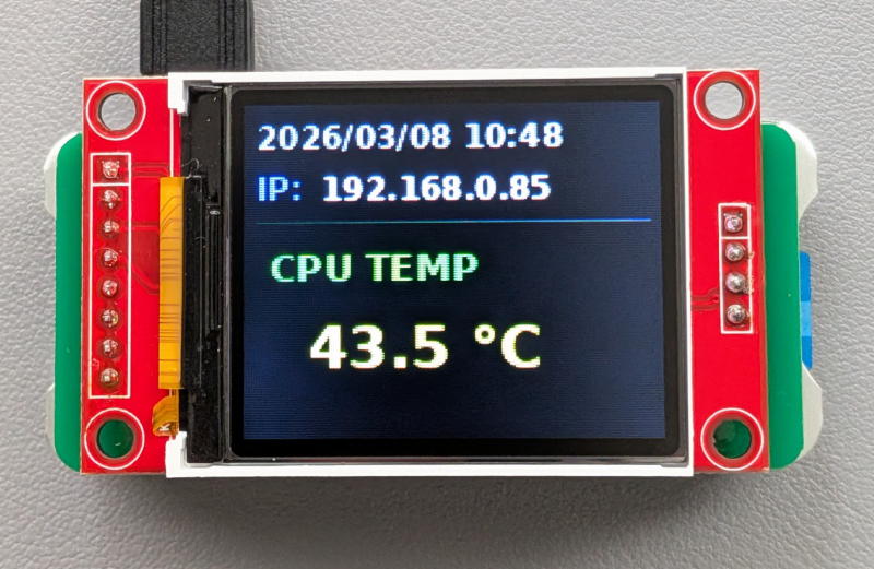 Yahoo!フリマで出品されていたRaspberry Pi Zero用のHAT付き1.8インチのTFT液晶ディスプレイ ST7735を購入し使ってみました。 デモ用のpythonプログラムがgithubに公開されているので、一応動作確認はできました。 このディスプレイに「Raspberry PiのIPアドレスとCPU温度を表示する」pythonプログラムを生成AIに作成させてみました。 使用したRaspberry Pi Zero 2w のOSバージョンは Trixi です。 今回購入したST7735のセットはHAT用に作成されたプリント基板に半田付けして使用するものでピン結線の変更ができないことと、ST7735には仕様が異なるいくつかの種類が存在することにより正常に動作させるまで少々手間取りました。 最初、ChatGTPにプログラムを作成をさせてみましたが、このAIが提案するプログラムを実行しても画面が正常に表示されなかったりエラーが出たりしました。その内容をAIに返すとさらに新しい提案を出してきて、これを実行するとまた正常に表示されなかったり、エラーが出たりするという繰り返しで、エンドレスになりそうだったので途中で断念しました。そこで、今度はGoogle Geminiにプログラム作成をさせてみたところ、数回修正を繰り返して正常に動作するようになりました。 このpythonプログラムをここに置いておきます。 systemdを利用してプログラムを自動起動させます。 #vi /etc/systemd/system/st7735.service ![]() #systemctl daemon-reload #systemctl enable st7735.service #systemctl start st7735.service #systemctl status st7735.service |